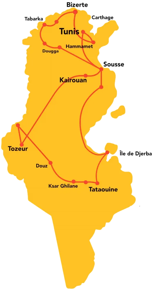 La Tunisie, c’est à la fois les vacances et l’aventure. Un monde de beautés où la mer et la plage sont à portée de main et où le désert du Sahara et les ruines de Carthage font partie du voisinage à explorer.